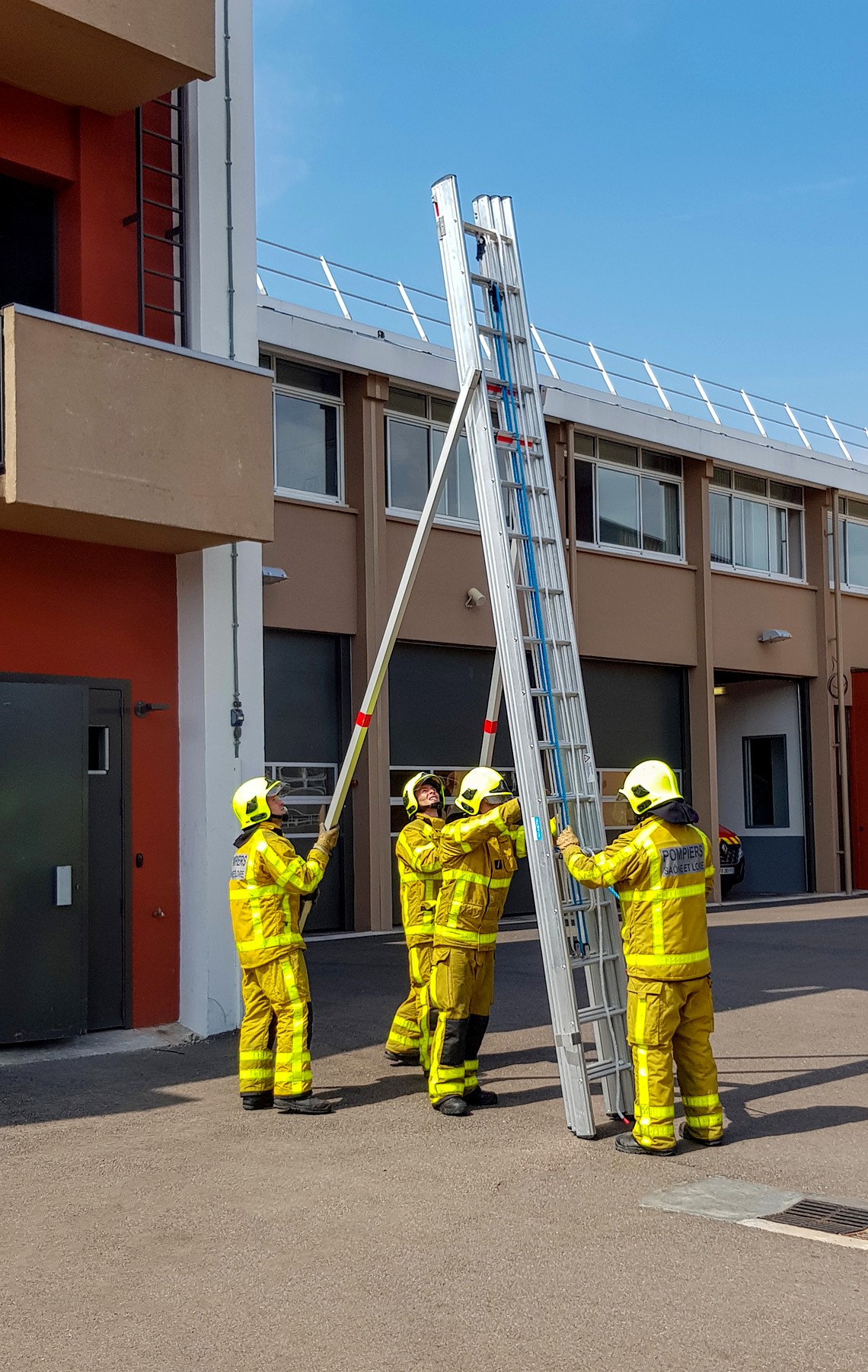 La gamme adaptée aux services de secours et d'incendie. Elle se compose d'échelles pour l'accès ou pour le sauvetage. Chaque équipement existe en aluminium ou en composite isolant pour l’intervention à proximité des sources électriques basse tension. Les normes de référence pour ces produits sont : EN 1147 et NIT 331.
